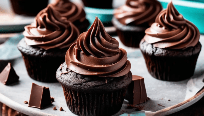 These chocolate fudge cupcakes are sure to satisfy your sweet tooth and elevate any dessert table with their indulgent flavor and stunning appearance!